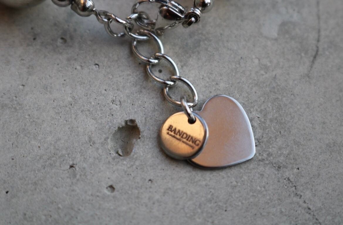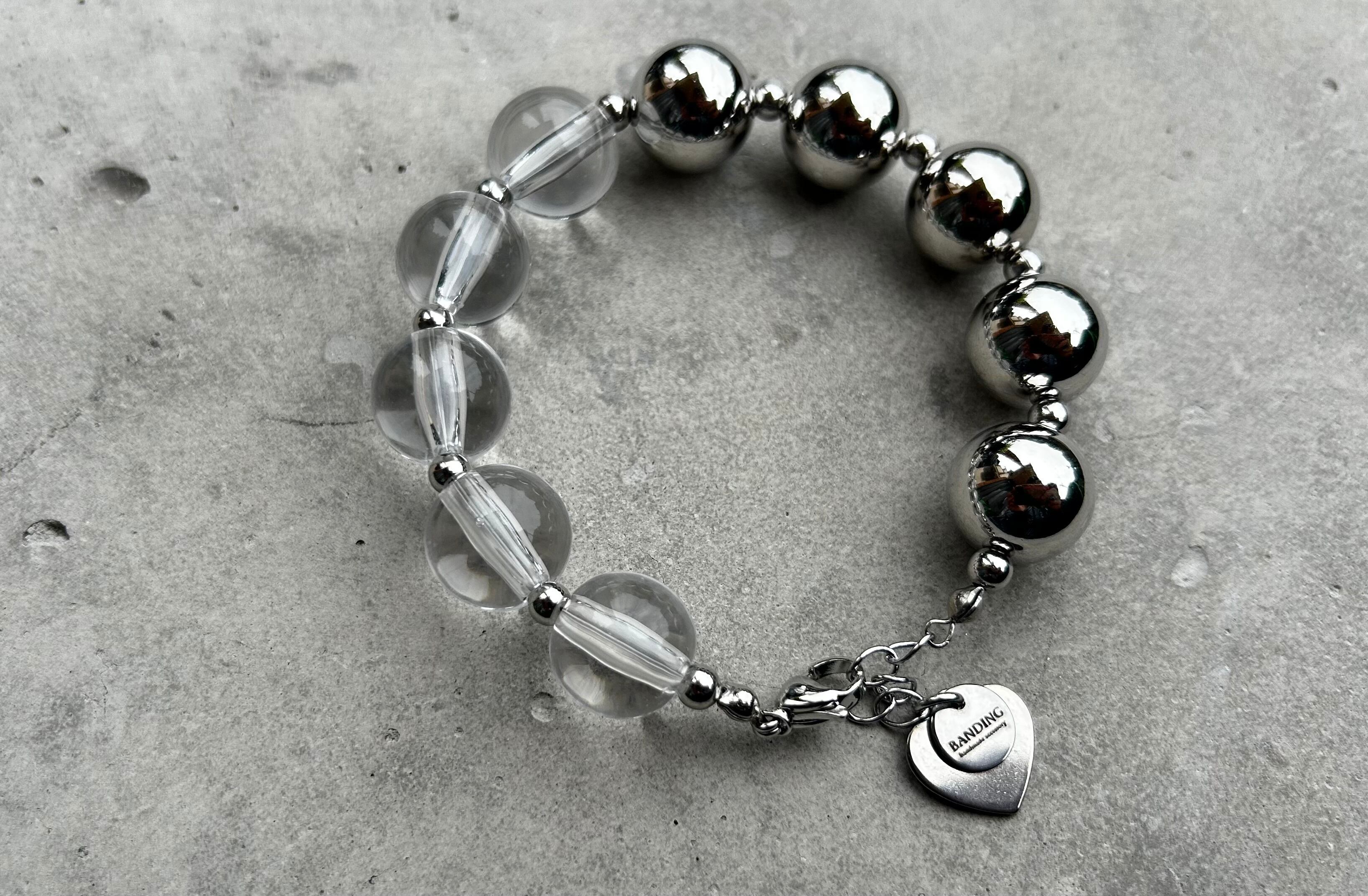 14mmのメタリックビーズとアクリルのクリアビーズを使用した