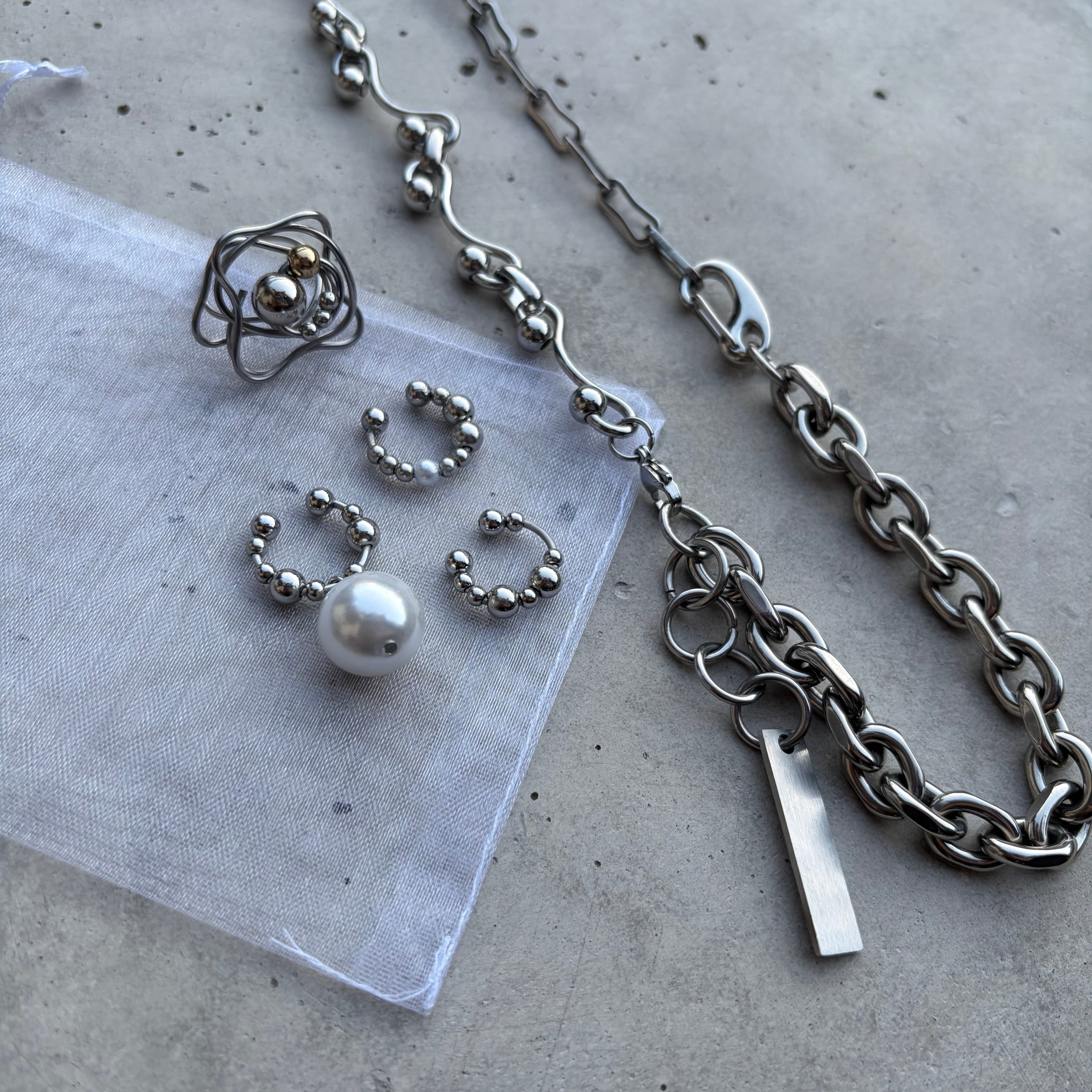 (カラー)イヤカフ1点はパールとシルバーのmixカラー