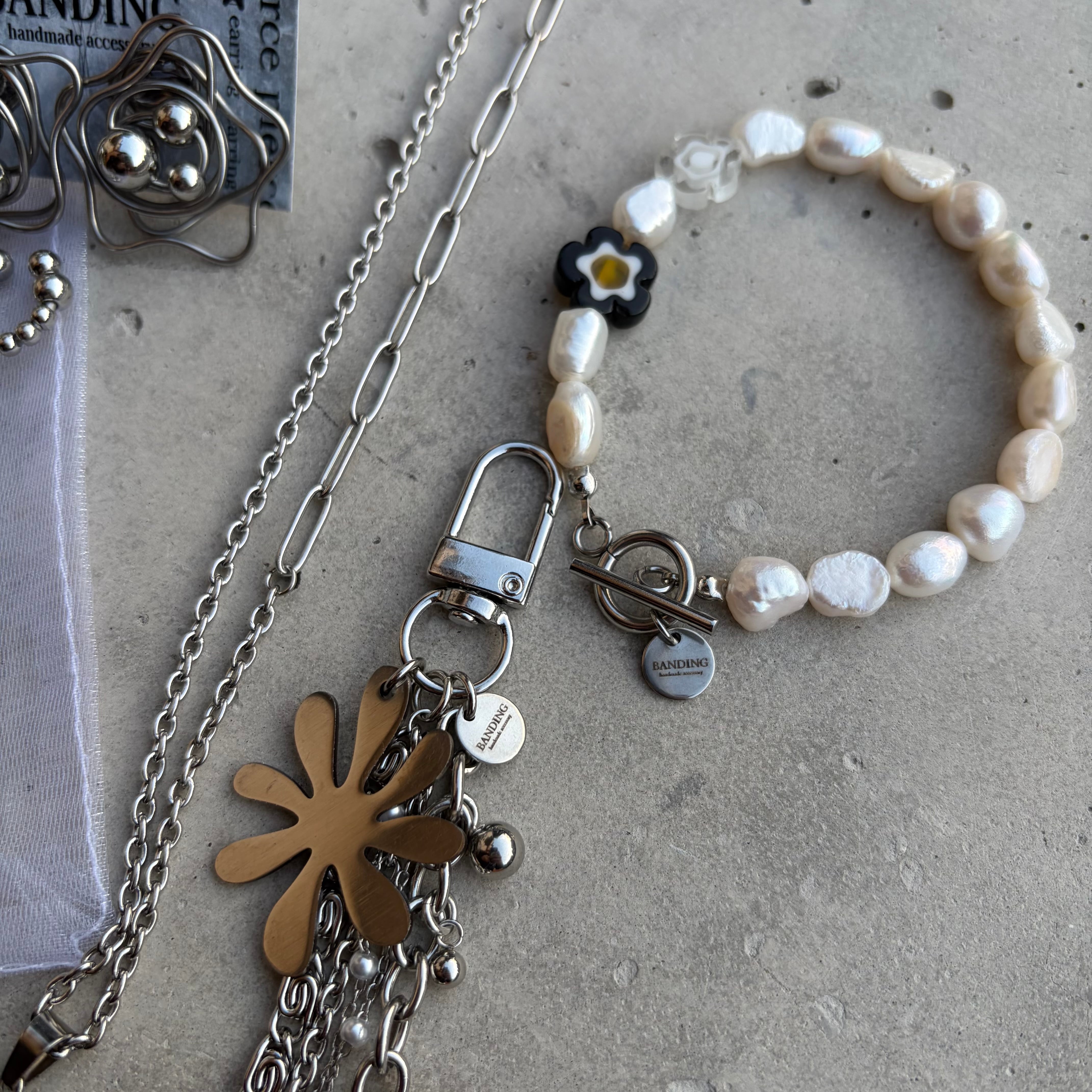 (素材)淡水パール/ミリフィオリガラスビーズ/ステンレス