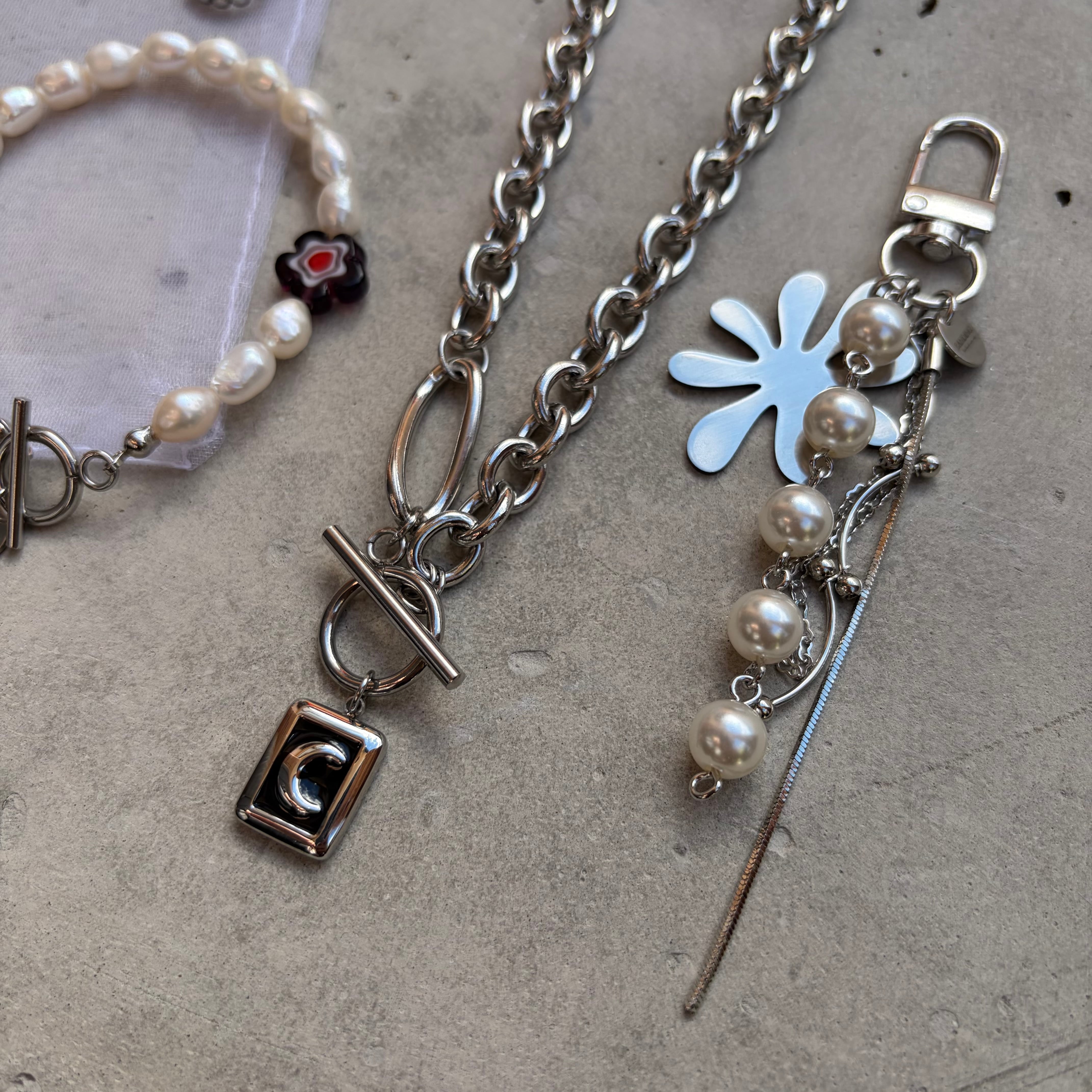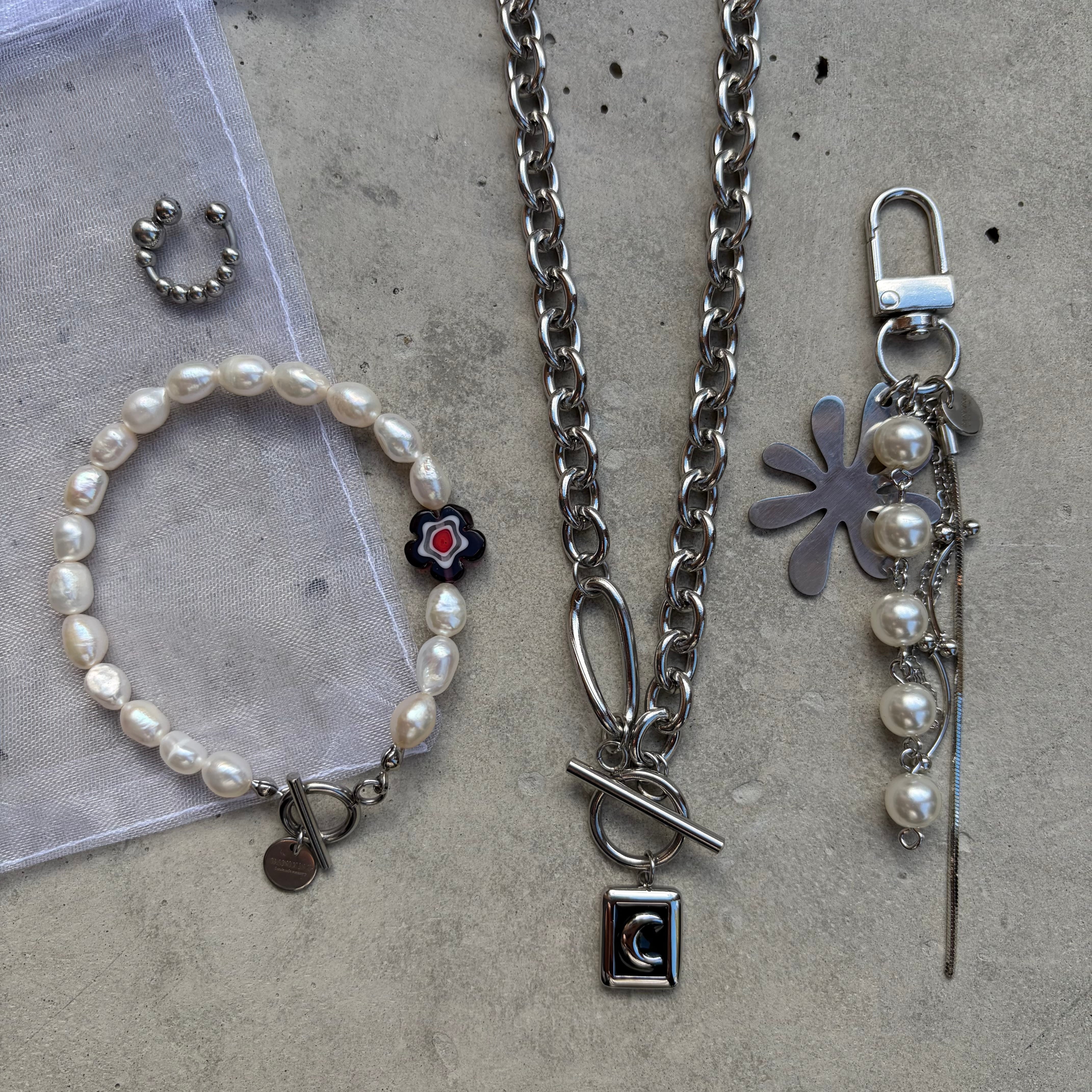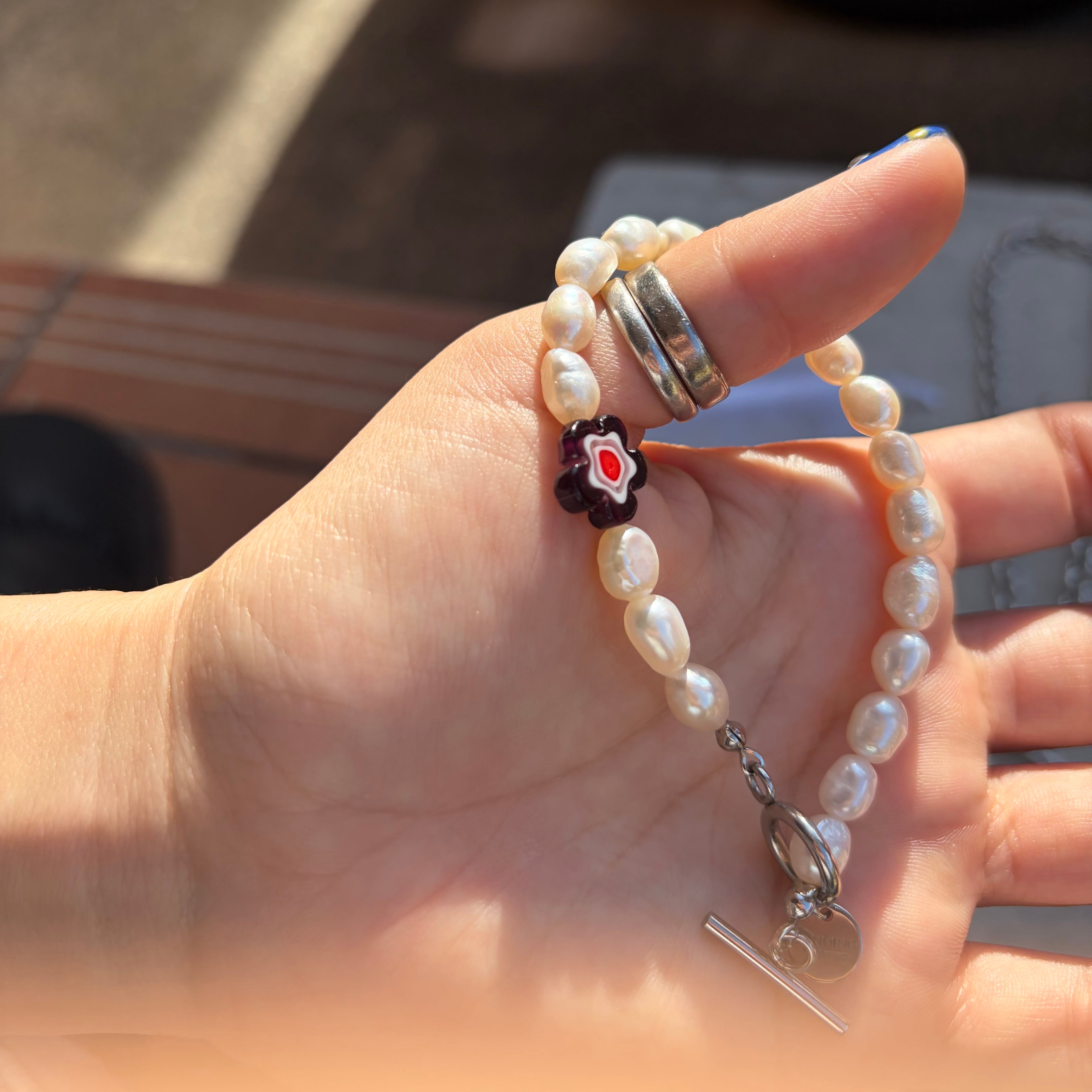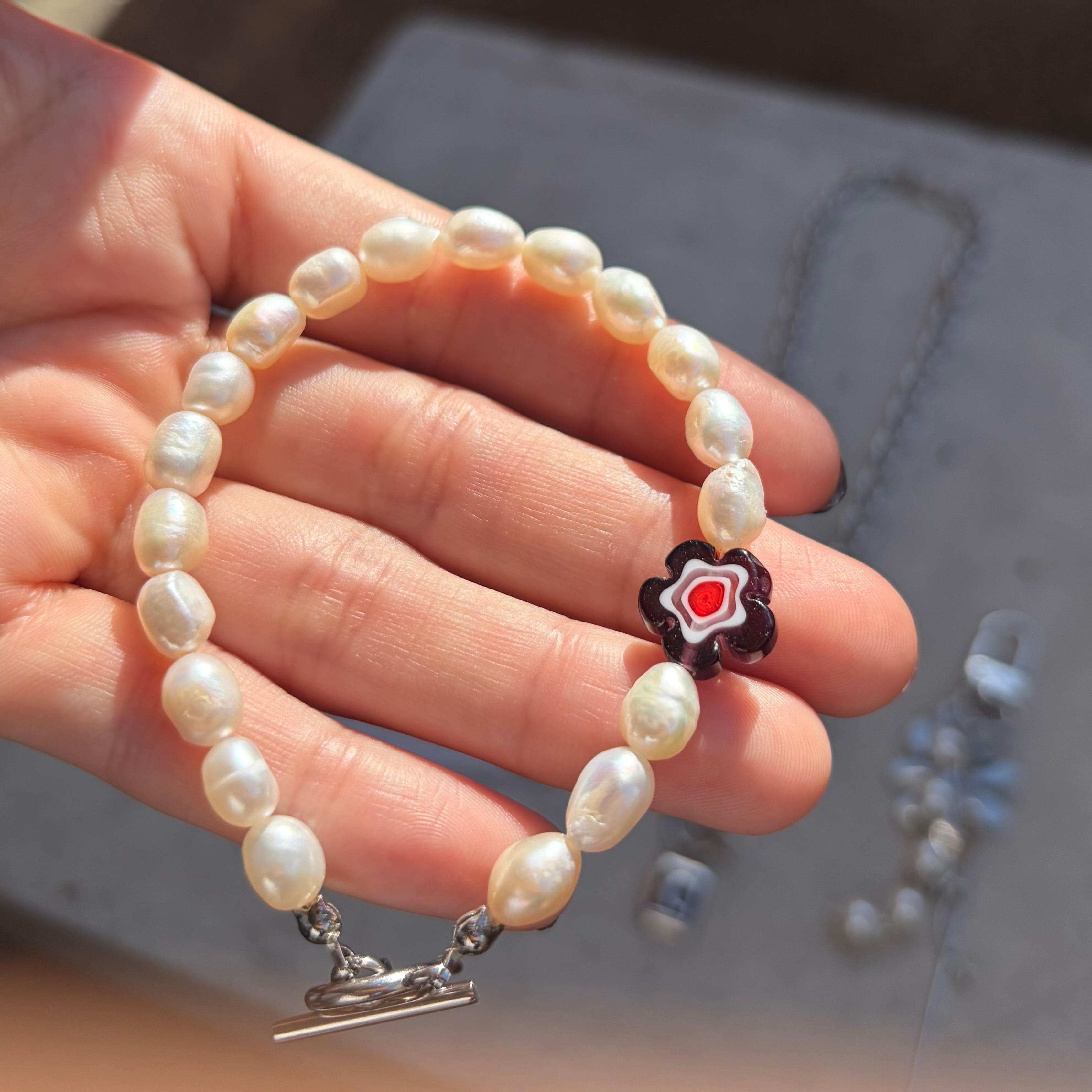 (素材)淡水パール/ミリフィオリガラスビーズ/ステンレス